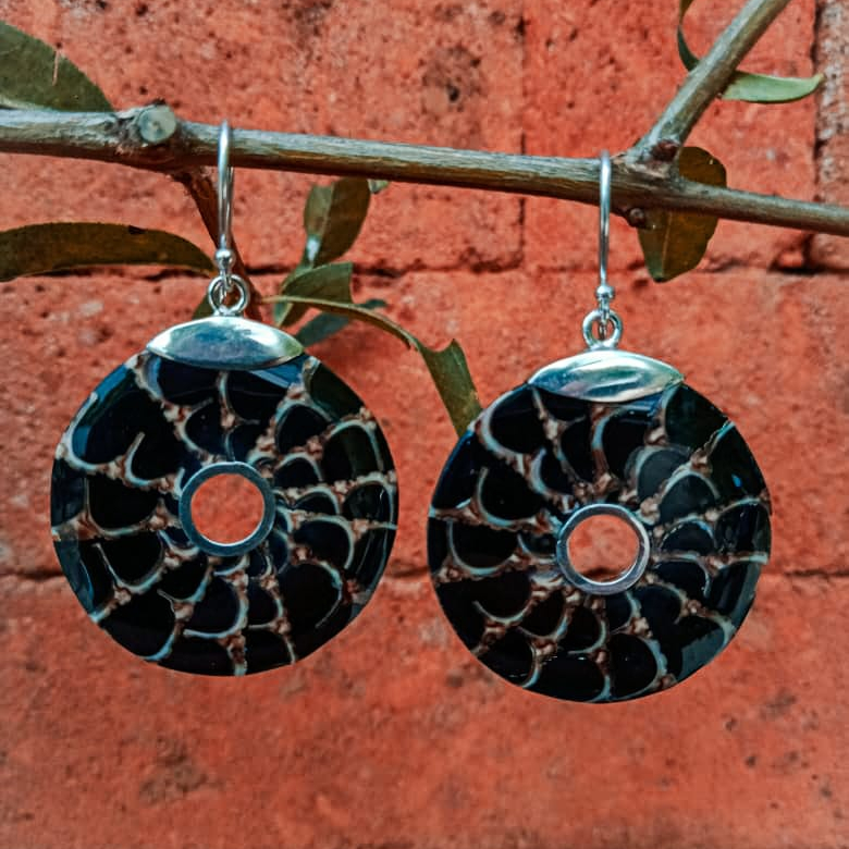This sterling silver earring is made from high-quality 925 sterling silver. Combine with mosaic shell and resin.