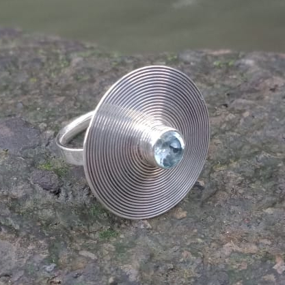 Sterling silver round disc ring, simple design with semi-precious gemstone