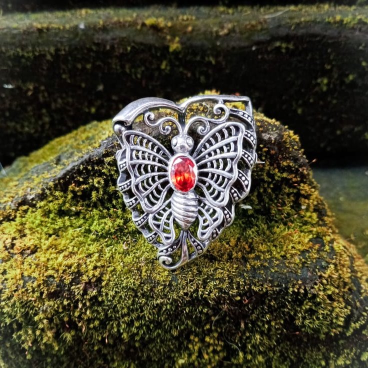 Sterling silver butterfly-shaped brooch and gemstone in the middle with stainless steel pin. This cute animal-shaped pin is really suitable for any occasion..