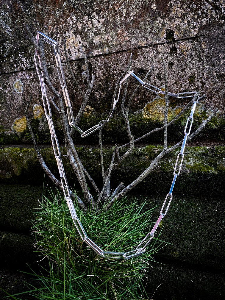 Sterling silver 2 x 5 x 21 mm flat link chain necklace with a lobster claw clasp. This classic design of a chain necklace is very suitable for daily occasions