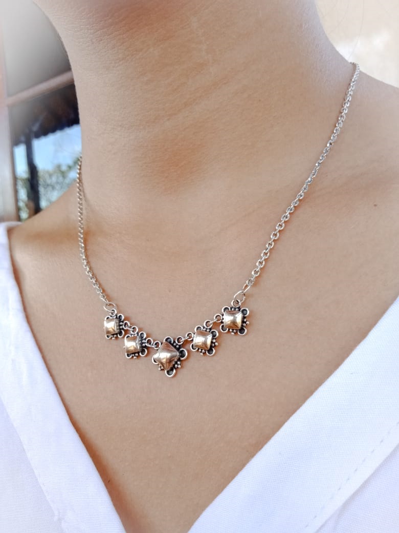A sterling silver ornate design necklace with a gold accent design. This classic design of necklaces is really suitable for daily use.