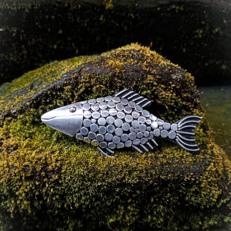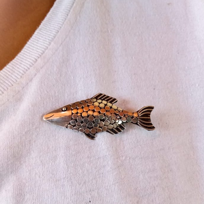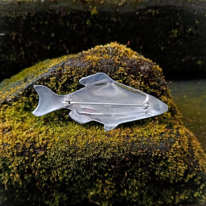 Sterling silver fish-shaped brooch with stainless steel pin. This cute animal-shaped brooch is really suitable for any occasion.
