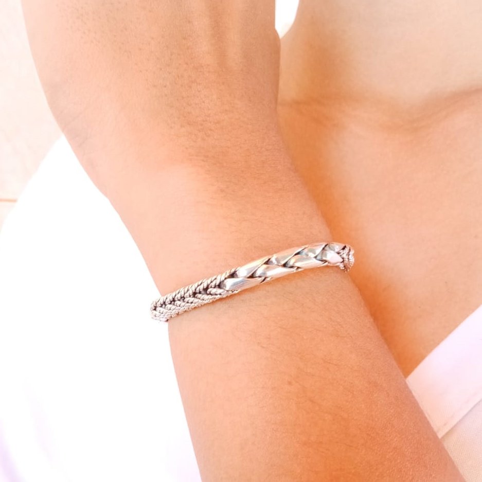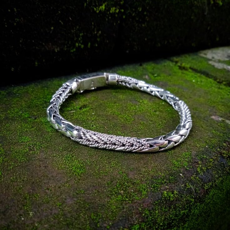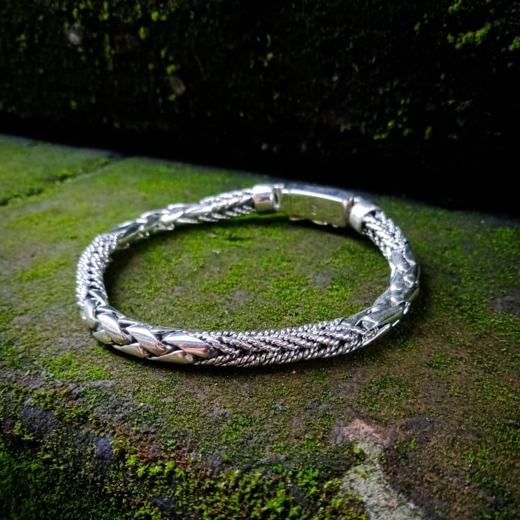 Sterling silver 5 mm mixed wheat and twisted snake square link chain bracelet with a box clasp. This unique look of a chain bracelet is very suitable for your special occasions.