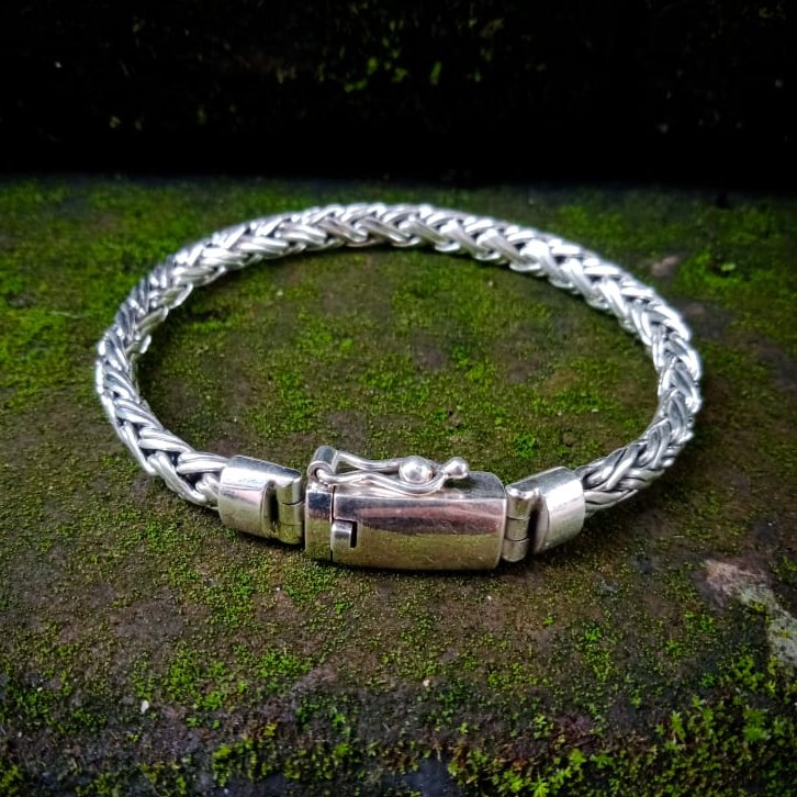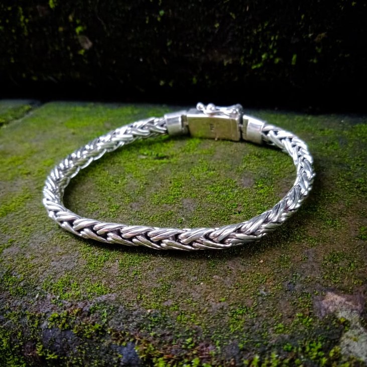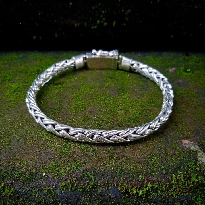 Sterling silver 6 mm Bali double wire wheat link chain bracelet with a box clasp. This classic design of a chain bracelet is very suitable for daily activities.