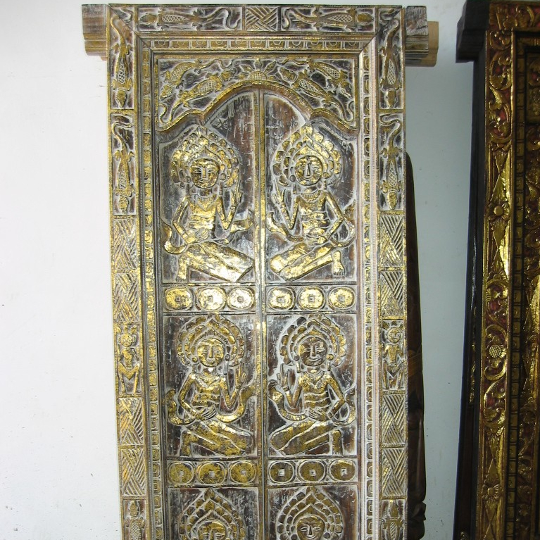 Wooden Antique repro of the Balinese house door, with Janger dancer relief.
