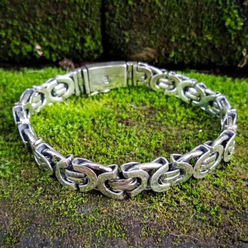 ![]() | NY-CHB059 | Sterling silver classic byzantine or Borobudur style, square link w/ a plain metal bar, box clasp. | Dimension: 4.5 mm thick x 4.5 mm width Length: 6.5″ – 9″ Est. Weight: 27-38 grams | $1.25 to $ 1.50/ Gram |