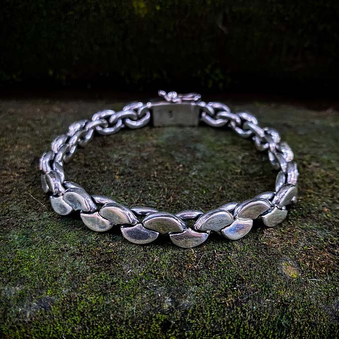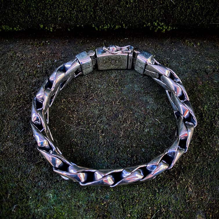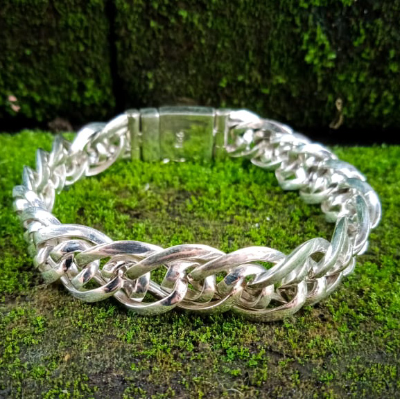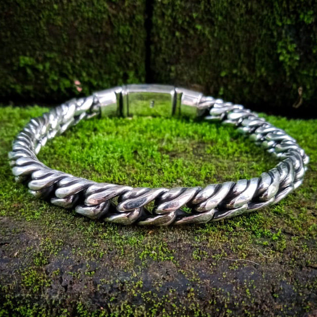 ![]() | NY-CHB039 | Sterling silver 10 mm Bali curb chain bracelet with a box clasp. | 4 mm thick x 10 mm width, Length: 6.5″-9″, Est. Weight: 57-65 grams | $1.25 to $ 1.50/ Gram |