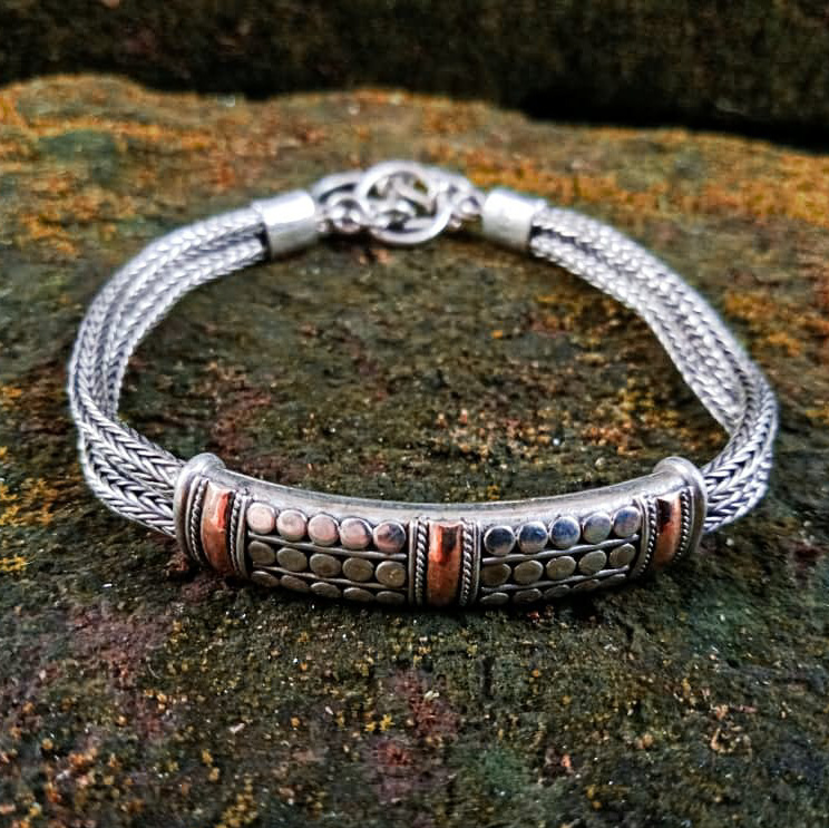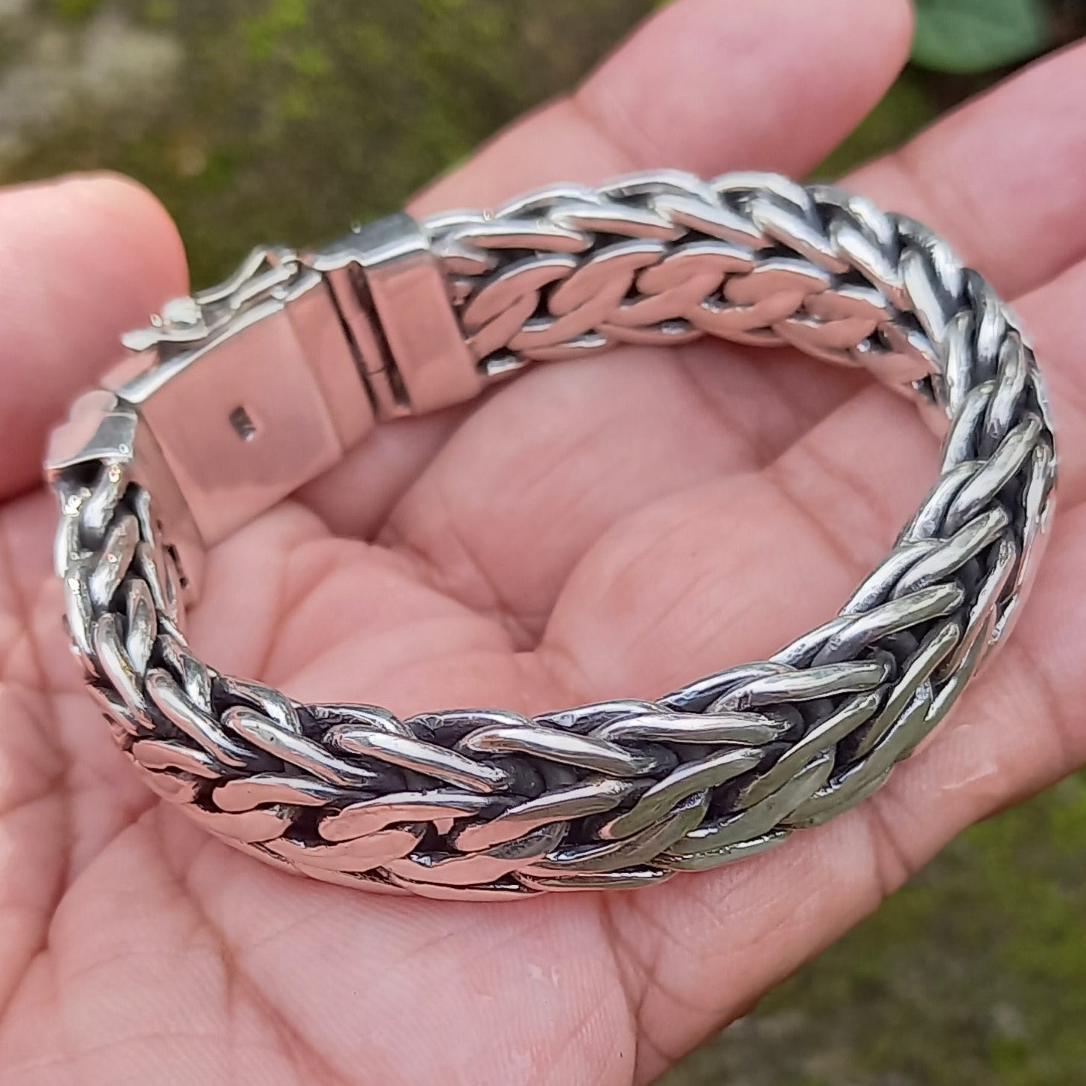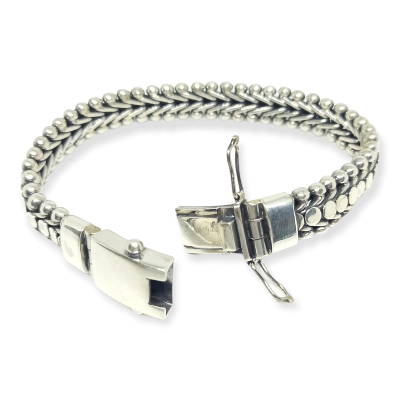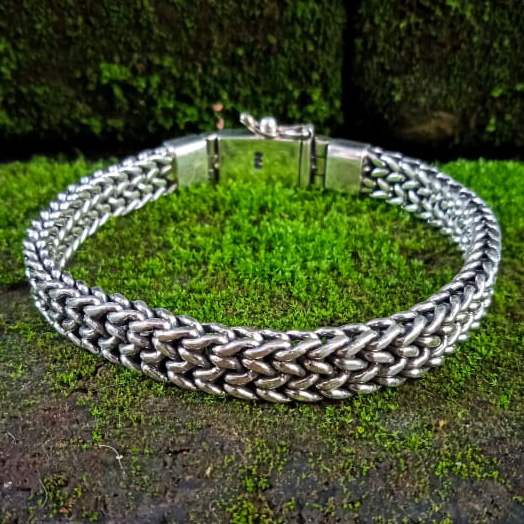 ![]() | NY-CHB038 | Sterling silver 6 mm Bali tulang naga link chain bracelet with a box clasp. | 4 mm thick x 6 mm width, Length: 6.5″-9″, Est. Weight: 25-35 grams | $1.25 to $ 1.50/ Gram |