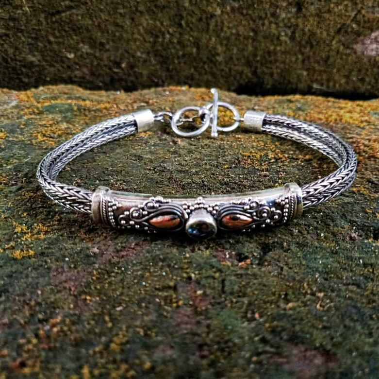 ![]() | NY-CHB026 | Sterling silver snake chain. With stones, and a granulation border design in the middle. | Stones: 6 mm,Chain: 3 mm,Length: 6.5″-9″,Est.Weight:11-16 grams | $27.00/ Piece |