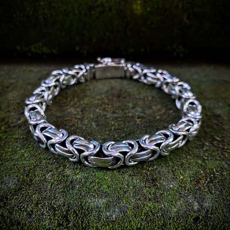![]() | NY-CHB044 | Sterling silver fancy square byzantine link chain bracelet with a box clasp. | 7 mm thick x 7 mm width, Length: 6.5″-9″, Est. Weight: 40-56 grams | $1.25 to $ 1.50/ Gram |