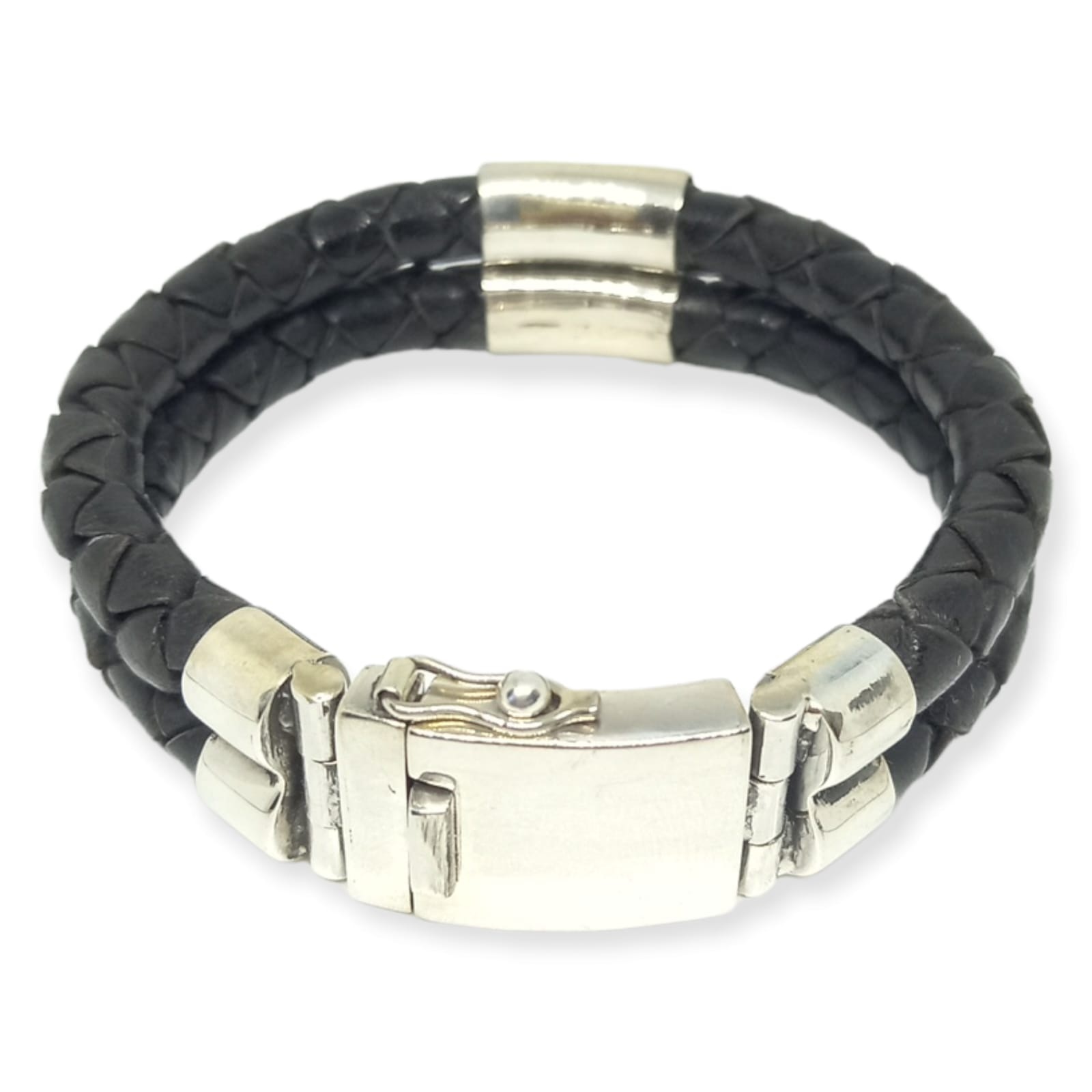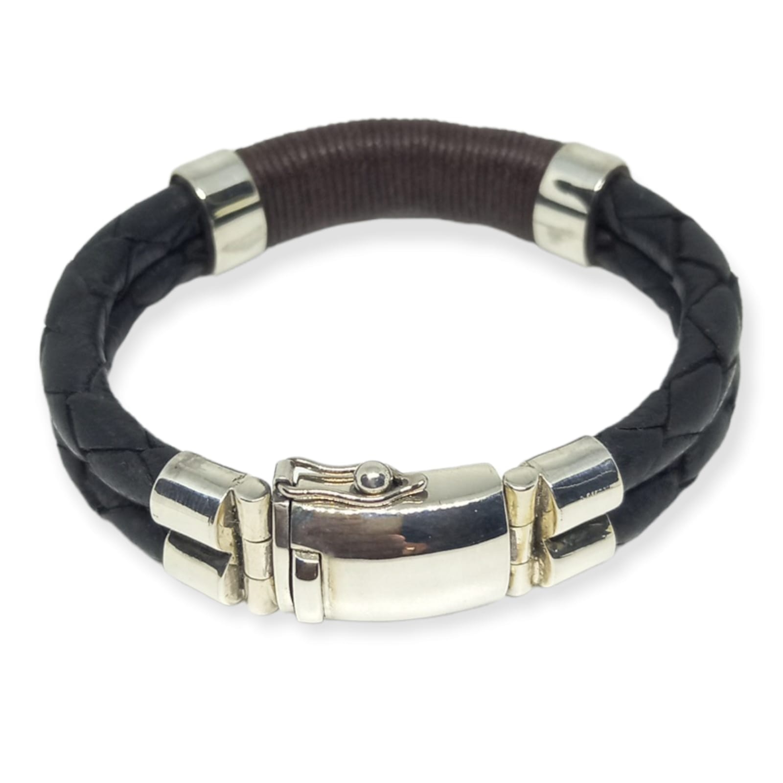 ![]() | NY-CHB055 | Sterling silver clasp with leather wrapped bracelet, double row. | 8 mm thick x 15 mm width Length: 6.5″ – 9″ Est. Weight: 32-45 grams | $1.25 to $ 1.50/ Gram |
