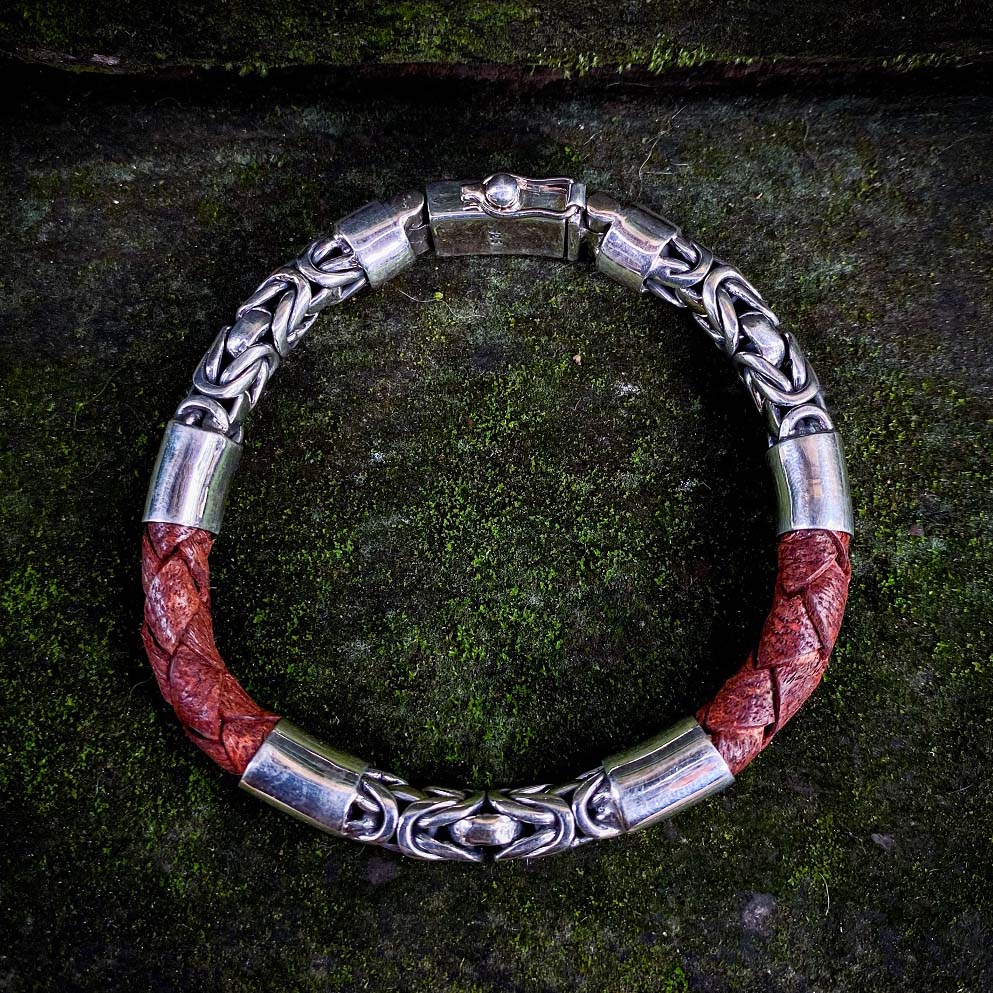 ![]() | NY-CHB058 | Sterling silver snake chain with leather combination bracelet, with a box-style clasp. | 6 mm thick x 6 mm width, Length: 6.5″ – 9″, Est. Weight: 29 – 41 grams | $1.25 to $ 1.50/ Gram |