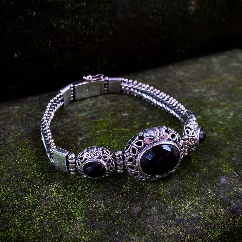 ![]() | NY-CHB062 | Sterling silver chain with black onyx beads combination | Chain: 6 mm Length: 6.5″ – 9″ Beads Size: 10 mm Est. Weight: 25-35 grams | $39.00/ Piece |