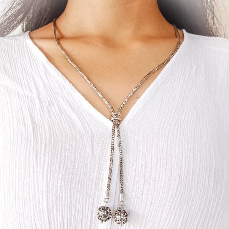![]() | NY-CHN001 | Sterling silver snake chain necklace with two Bali beads hanging on the bottom. | 2.5 mm thick, Length: 28″, Est. Weight: 30 grams | $1.25-$1.50/ Gram |