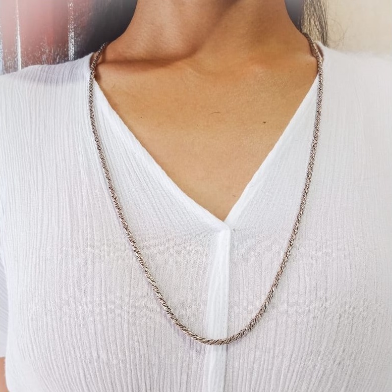 ![]() | NY-CHN004 | Sterling silver 2.5 mm twisted rope chain necklace with hook clasp. | 2.5 mm thick, Length: 12″-32 “, Est. Weight: 11-30 grams | $1.25-$1.50/ Gram |