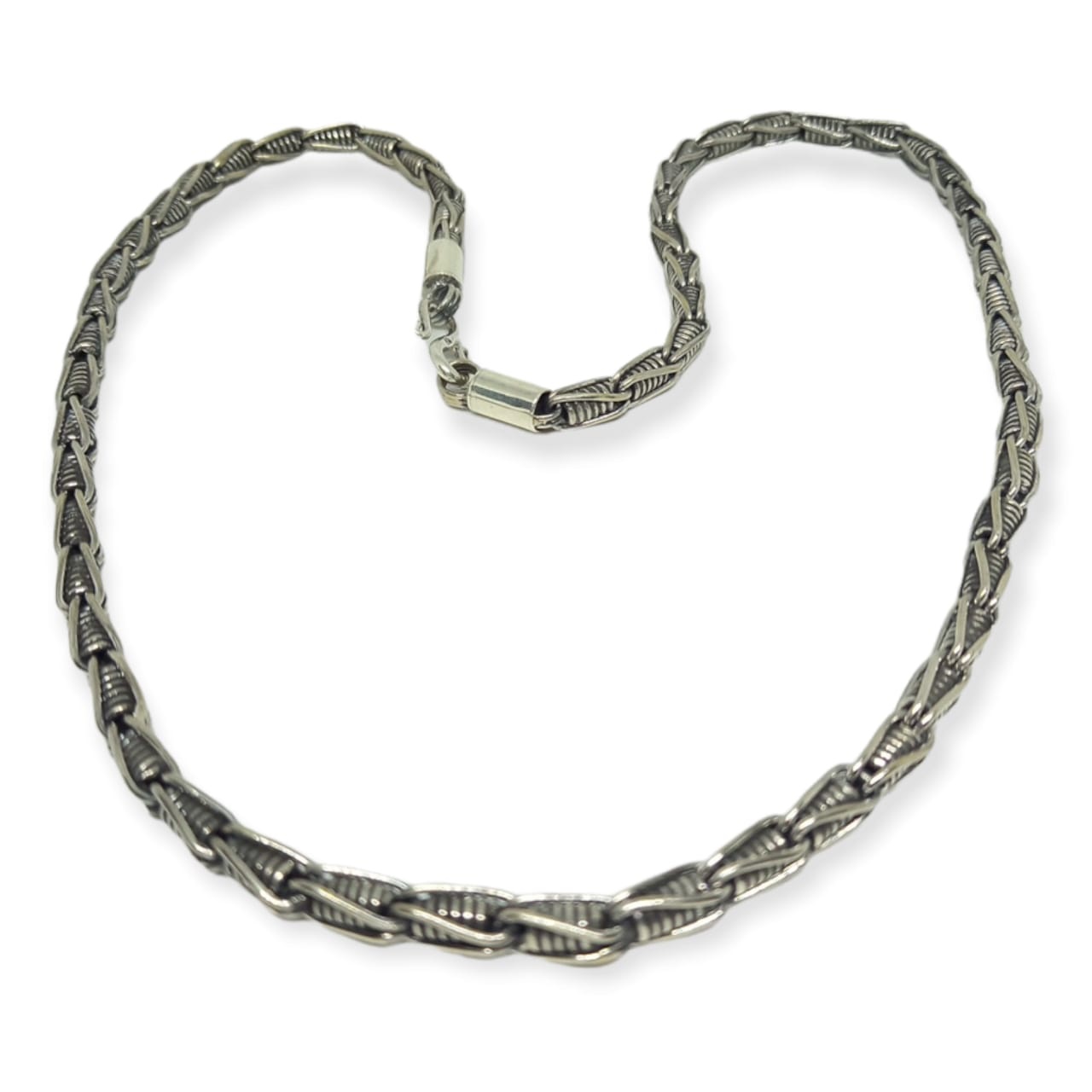 ![]() | NY-CHN006 | Sterling silver wire and twisted wire link chain necklace with a standard hook clasp. | 4 mm thick, Length: 12″-32 “, Est. Weight: 25 – 68 grams | $1.25-$1.50/ Gram |