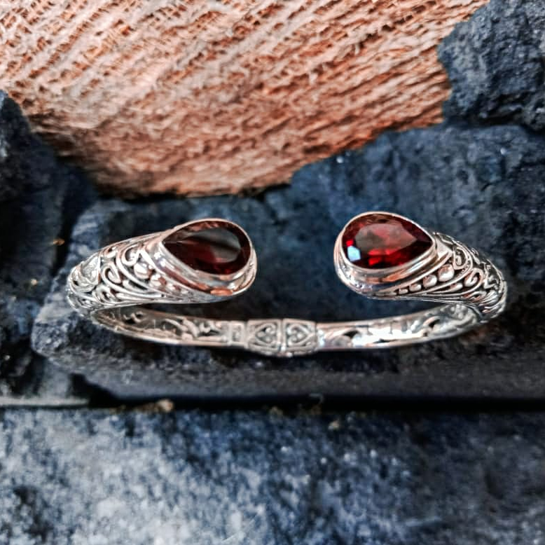 NY-CFB001Sterling silver hinged cuff bracelet, can be opened and closed, with gemstone.Diameter: 54 mm, Width: 8 mm, Stones: 6×9 mm pears, Est Weight: 18.5 grams.$38.99/ Piece