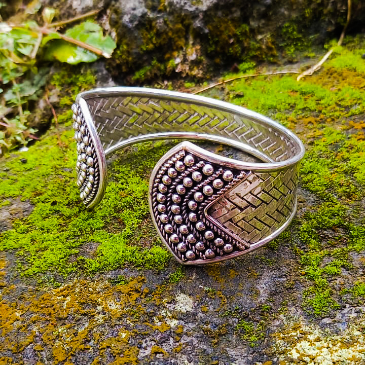 GNW-CFB002Sterling silver cuff bracelet for women and unisex. Diameter: 70 mm, Width: 23 mm, Cuff Opened: 30 mm, Est. Weight: 40 grams.$1.80/ Gram