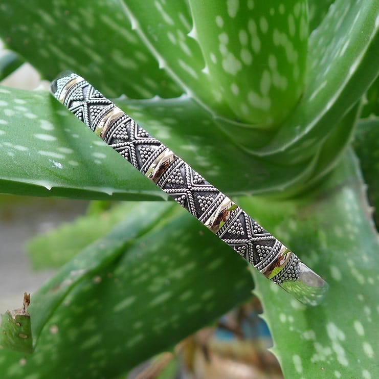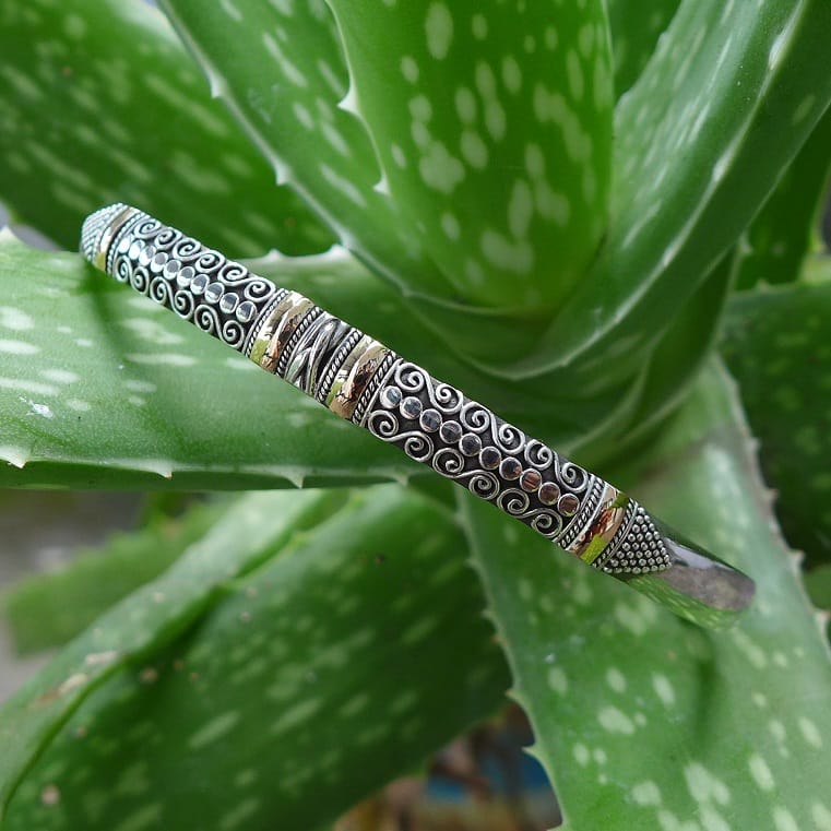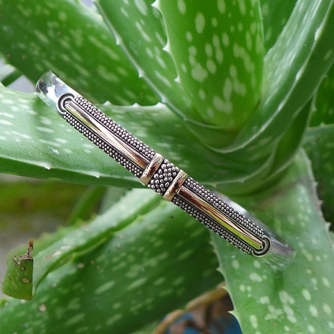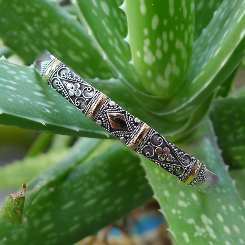 NY-CFB025Sterling silver cuff bracelet with gold accent.Diameter: 60 mm, Width: 5 mm, Est Weight: 8.5 grams.$25.99/ Piece