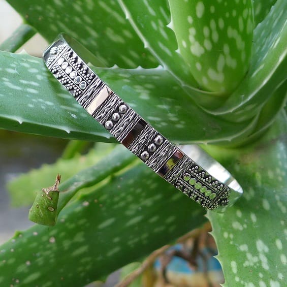 PLM-CFB002Sterling silver hinged cuff bracelet, with a gemstone.Diameter: 58 mm diameter, Width: 8 mm, Stones: 3 mm, Est Weight: 15 grams.$25.99/ Piece