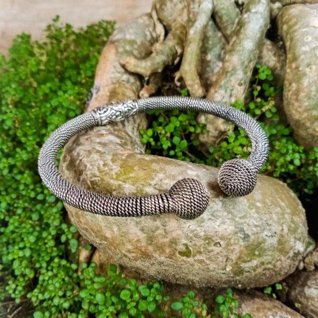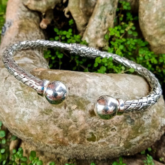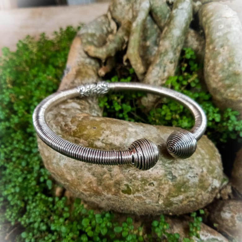 PLM-CFB001Sterling silver hinged cuff bracelet, wire coil design all over the body of the cuff.Diameter: 58 mm, Width: 8 mm, Est Weight: 20 grams.$29.99/ Piece