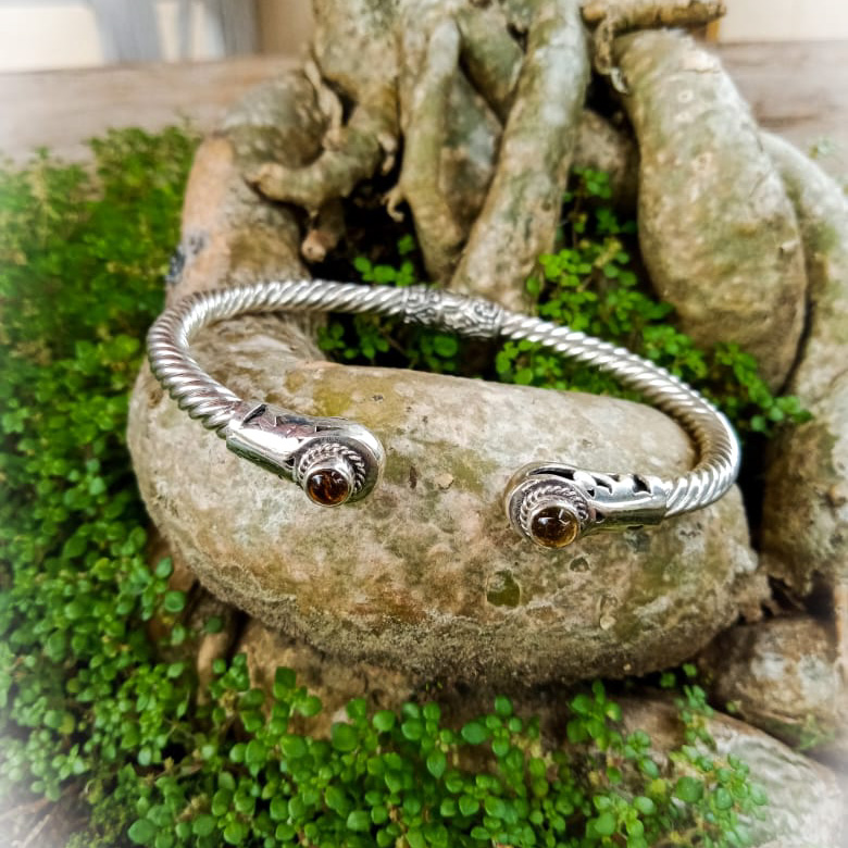 NY-CFB003Sterling silver cuff bracelet, hinged opened, twisted wire band with gemstoneDiameter: 62 mm, Width: 10 mm, Stones: 6×8 mm, Est Weight: 20 grams.$40.99/ Piece