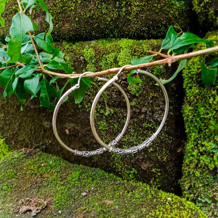 Bali hoop earrings are a style of earrings that are influenced by the intricate and ornate craftsmanship of Balinese jewelry design. These earrings typically feature detailed metalwork, often incorporating filigree, granulation, or intricate patterns inspired by nature and Balinese cultural motifs. Bali hoop earrings are known for their distinctive and unique appearance, incorporating elements that reflect the artistry and cultural heritage of the island of Bali. These earrings offer a blend of traditional Balinese craftsmanship with modern style, creating a striking and elegant accessory.