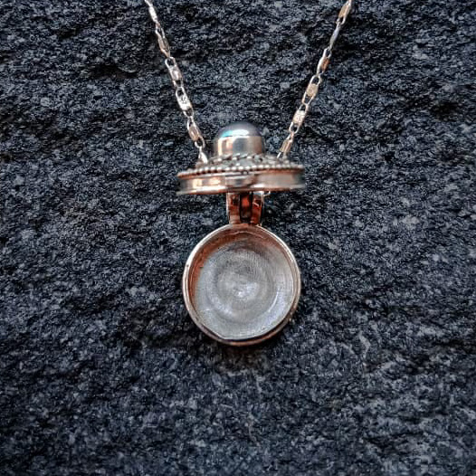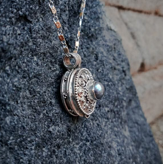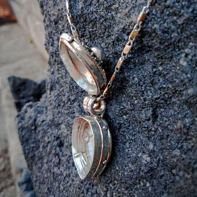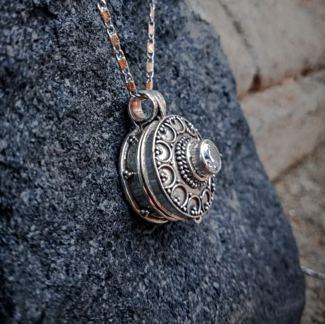 A locket is a pendant that opens to reveal a space used for storing a photograph or other small item such as a lock of hair. Lockets are usually given to loved ones on holidays such as Valentine’s Day and occasions such as christenings, weddings, and, most noticeably during the Victorian Age, funerals. However, in Bali, we have been using lockets for newborn baby, to keep their umbilical cord, for the baby keeper or talisman.